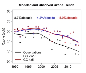 Tropospheric ozone is negatively impacts human health and is a greenhouse gas. It is produced via complex radical chemistry. Despite decades of effort, tropospheric ozone has proven difficult to model accurately over both long and short timescales due to its non-linear chemistry and uncertainties in precursor emissions estimates. We are investigating ways to improve model ozone estimates, including by introducing emissions constraints and through new techniques such as machine learning.