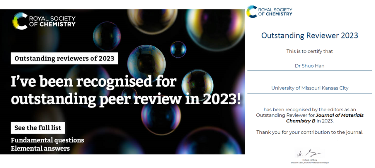 Outstanding Reviewer March 25, 2024 I am very happy to share that I’ve been recognized as one of the Royal Society of Chemistry’s 2023 outstanding reviewers. Explore the full list at rsc.li/OutstandingReviewers2023 #RSCPeerReview